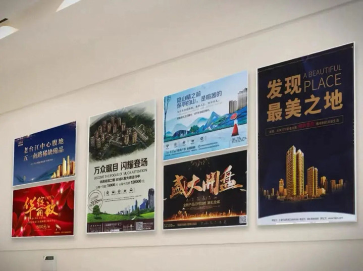 咱们在售楼部都见过这种大气的宣传海报图,整个一面墙,视觉上挺不错的。