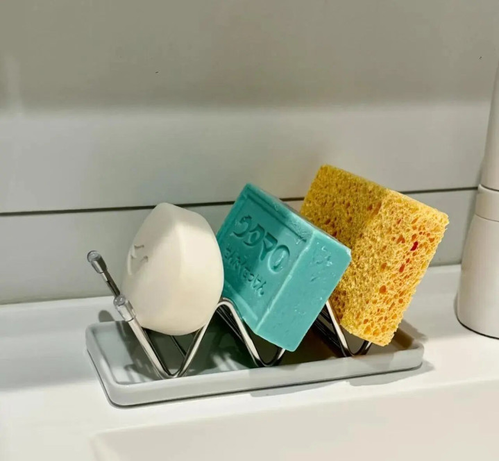 我当时一边往嘴里炫,一边愣神,这不锈钢架很简约,中间有空隙肯定不会积水,家里放肥皂岂不是妥妥滴!